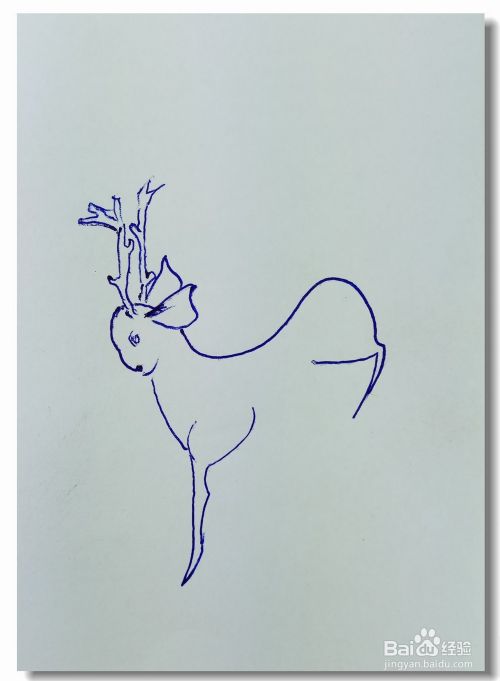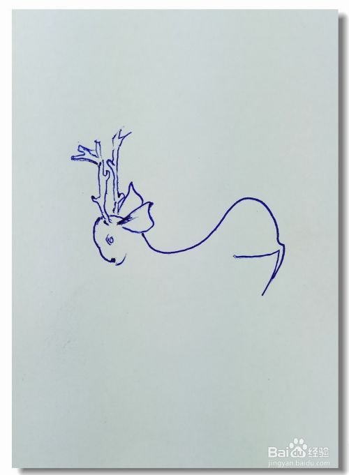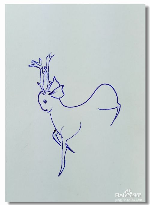 在白纸上画出小鹿的头部,并画出它的眼睛,耳朵,并然后再画出鹿角部分。