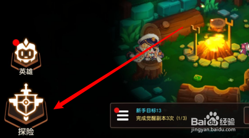 进入到坎公骑冠剑的游戏中,点击左下方的探险选项。