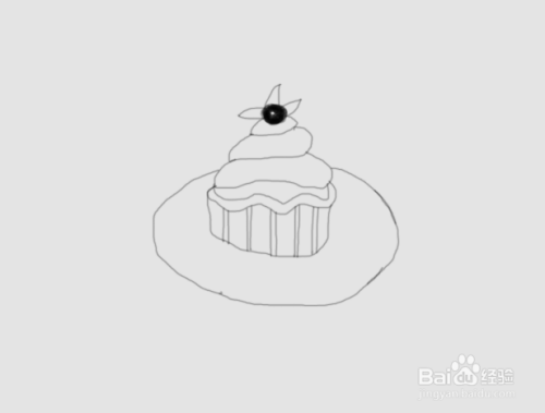 最后在盘子上面再画出花纹线,这样我们的蛋糕就画好了,如图所示:
