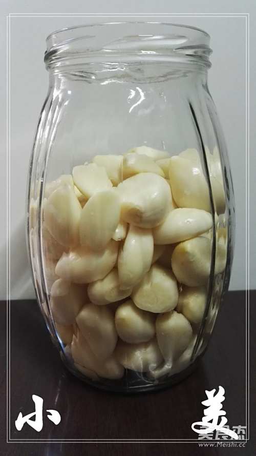 3玻璃瓶用一点点米醋洗一下,这样瓶子更干净。将大蒜装入
