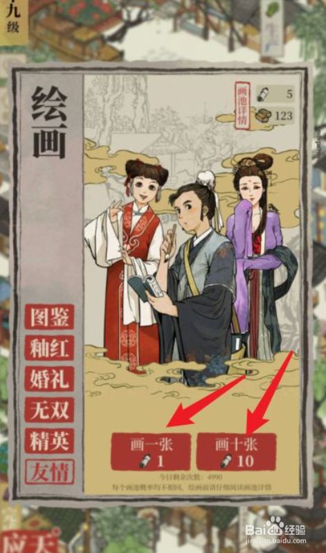 然后选中左侧的友情绘画,点击画一张或十张。