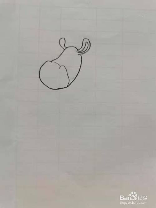 第一步,我们画小鹿的头部轮廓和耳朵。