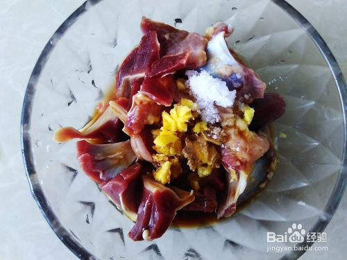 1、首先把鸡胗处理干净,切片用调料腌制入味。