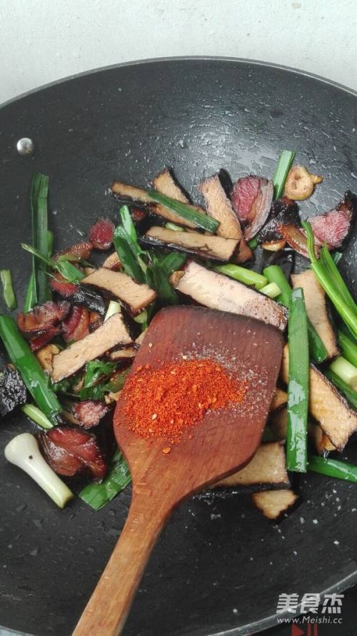 放入香干片翻炒至8成熟