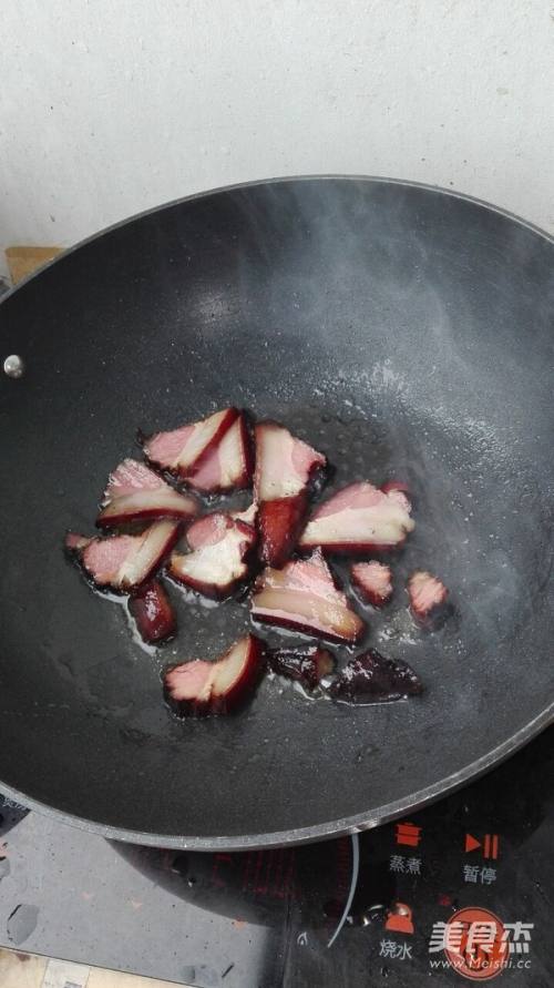把腊肉放入煸炒至出油