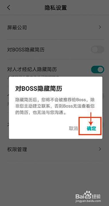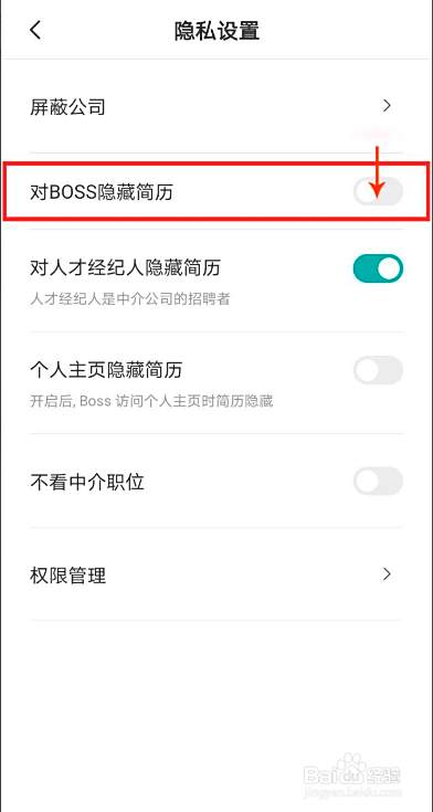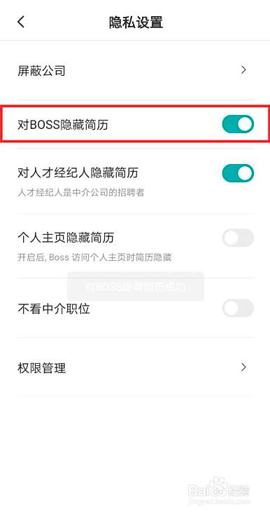 点击【对boss隐藏简历】后面的按钮。