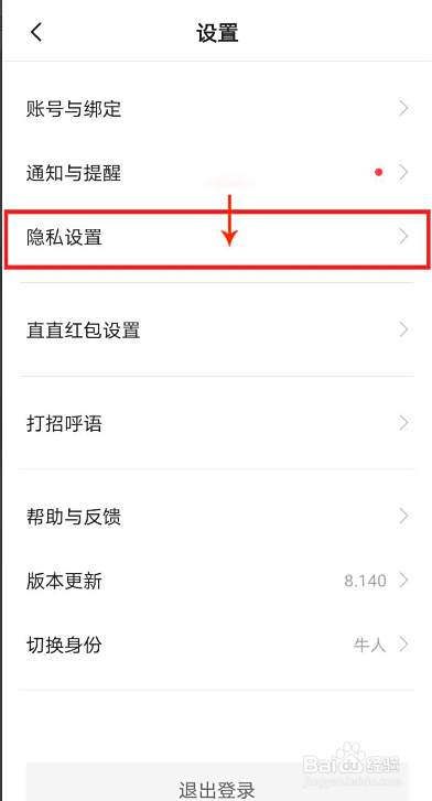 进入设置界面后,点击【隐私设置】。