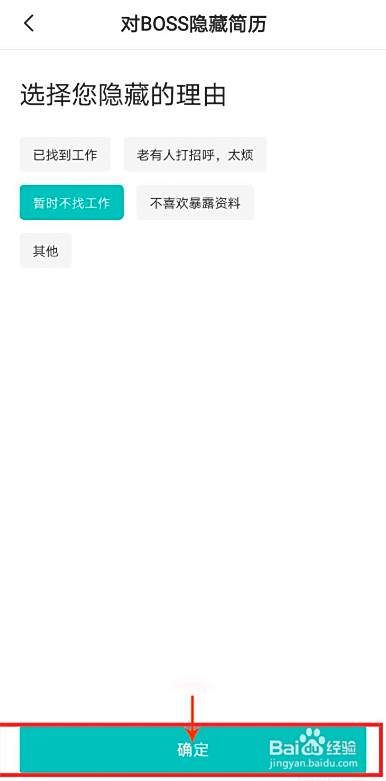 点击选择隐藏简历的原因,点击下方【确定】即可隐藏成功。