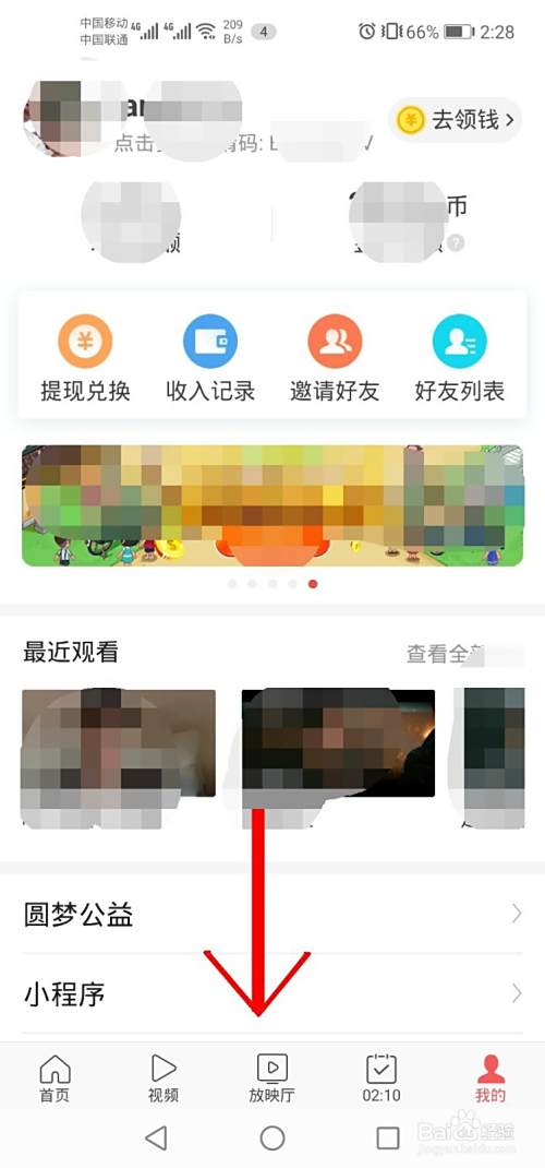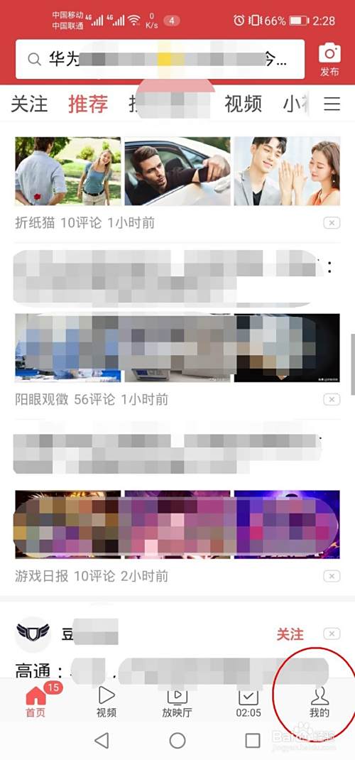 一般主页面为推荐页面。点击右下角的“我的”页面,进入下一步。