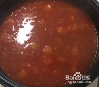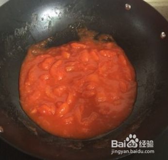 锅里放适量的花生油,将准备好的西红柿倒入锅中,加入适量的番茄酱翻炒均匀,大概煮两分钟时间。