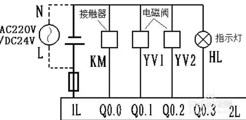 输出端接线,输出端直驱的继电器指示灯等设备需要外接电源,这时候需要知道输出端的电源类型。