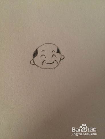 如图,画出老人的眼睛、鼻子、嘴巴、胡须,微笑的表情。