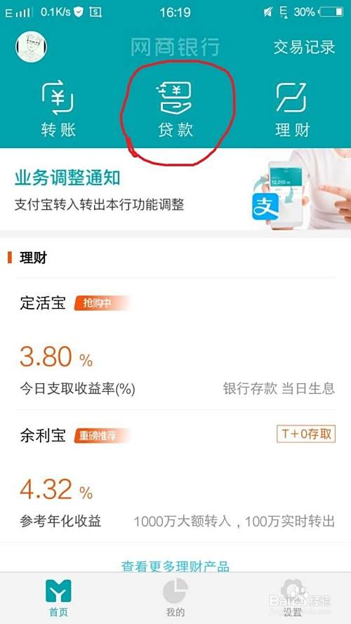 一般默认通过支付宝账号登陆,这种方式比较快捷,不用再填个人信息资料,而且之后的借呗信用额度会跟支付宝挂钩的;然后我们进入网商银行APP首页,可以看到页面上端中间有一个“贷款”,点击一下进入。
