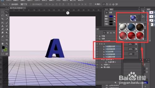 然后,我们按ctrl键选中【3D】面板中的所有材质,然后选择自己喜欢的材质。