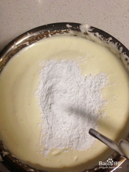 蛋糕粉加入到打发好的鸡蛋中时,一定要采用切拌的方式,不然容易消泡。
