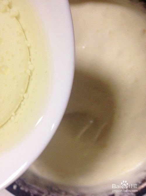 牛奶和油搅拌均匀后加入鸡蛋面糊中。