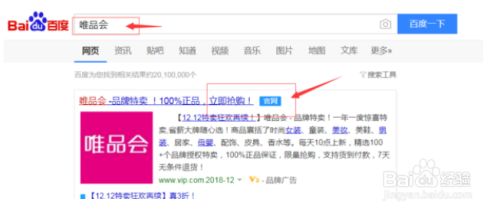 打开百度搜索,在搜索栏输入”唯品会“,搜索会找到唯品会官网并点击进入。