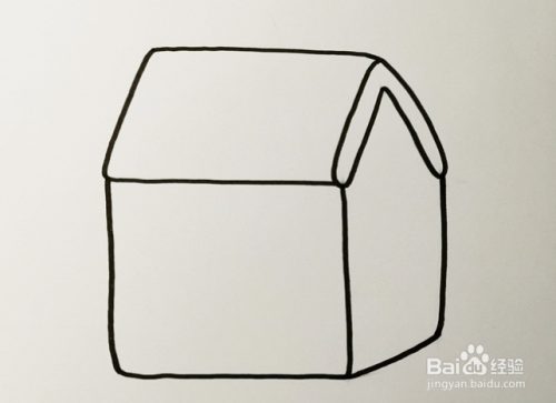 首先要画出房子的基本轮廓,房顶是三角形状的样子,房子主体部分是方正的矩形。
