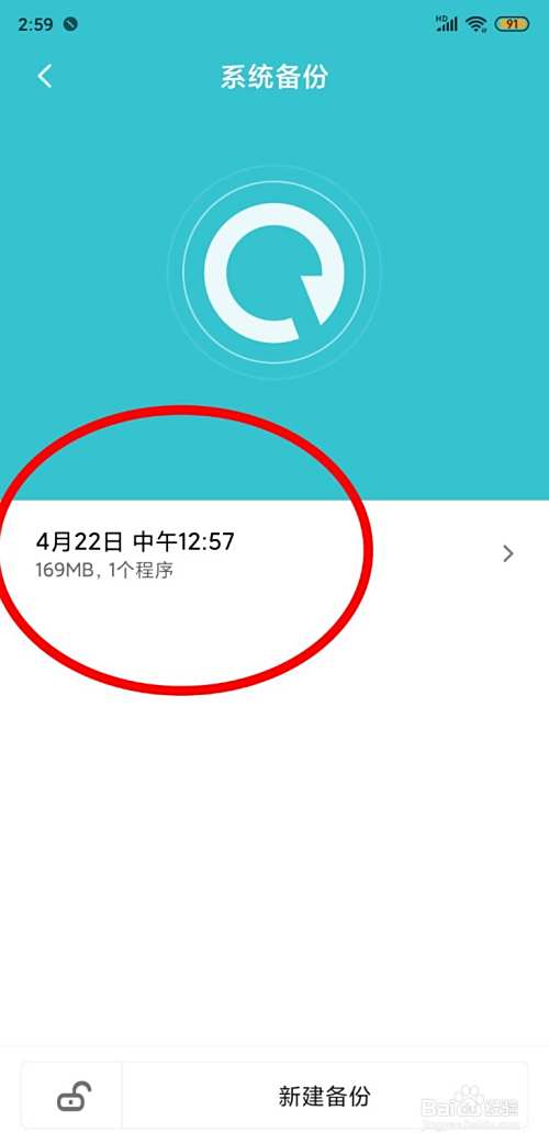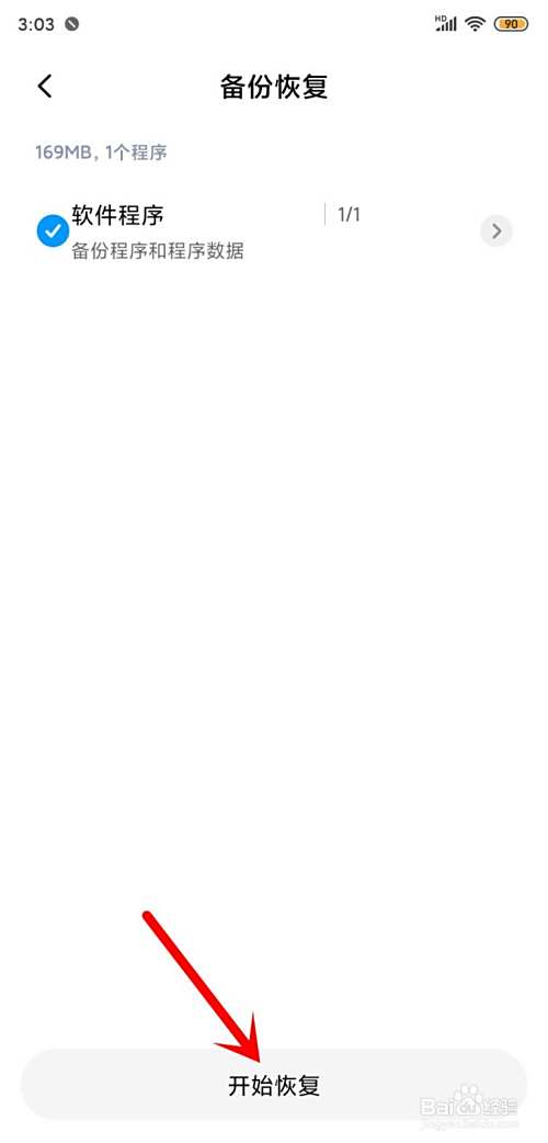 4.需要恢复时点击该备份,再点击下方【开始恢复】;