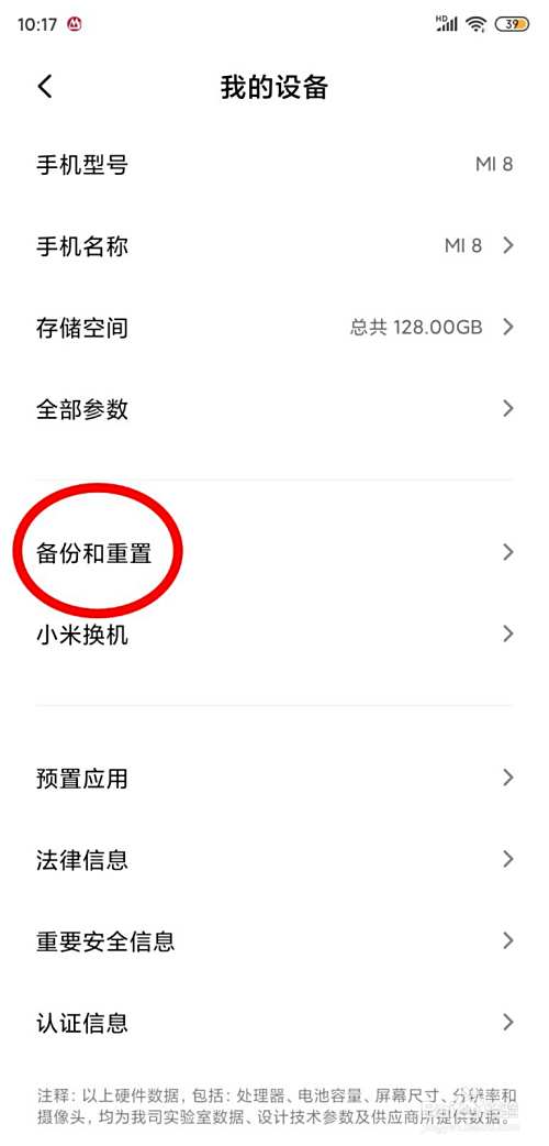 接着在我的设备中选择【备份和重置】,如下图所示: