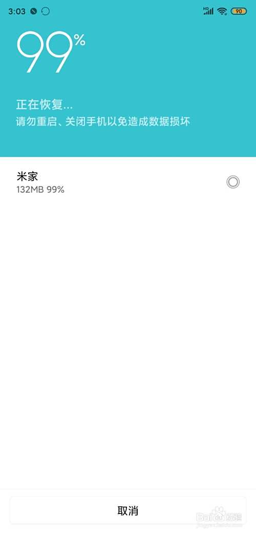 点击后,不要进行重启、关机等操作,稍等片刻即可完成恢复备份数据。