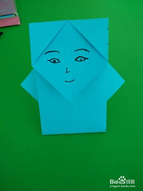 翻一面,折叠,可以看见一个没有重叠的菱形你就是小女孩的脸了!