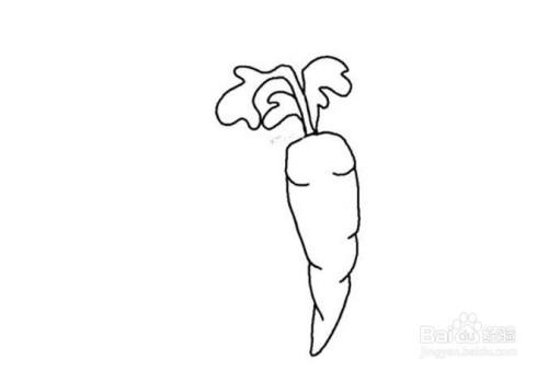 1.先画胡萝卜的身体,画的时候注意线条的褶皱。