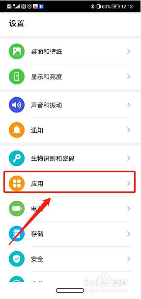 点击【设置】选项进入设置界面。在设置界面找到【应用】功能。