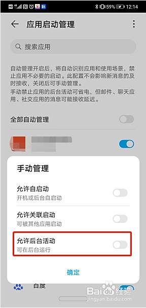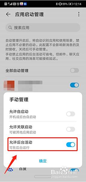 在软件列表里找到要设置为后台运行的软件并点击弹出设置窗口。
