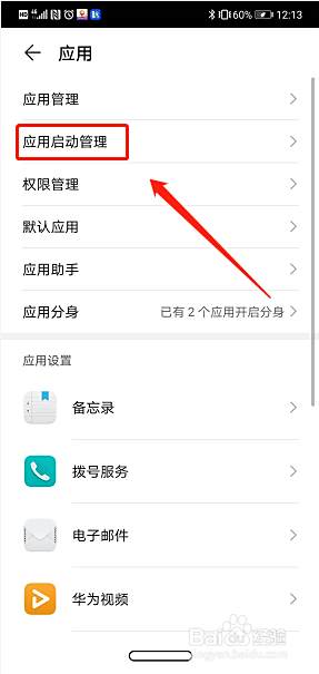 点击【应用】进入应用界面。找到【应用启动管理】。