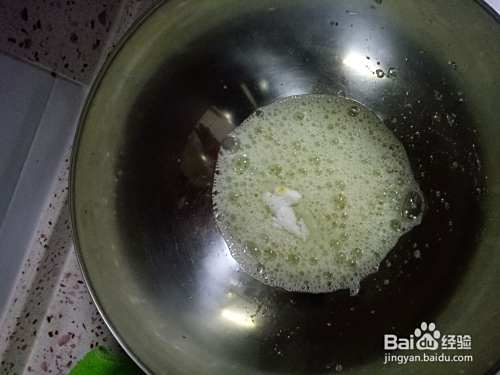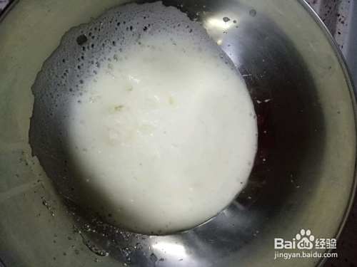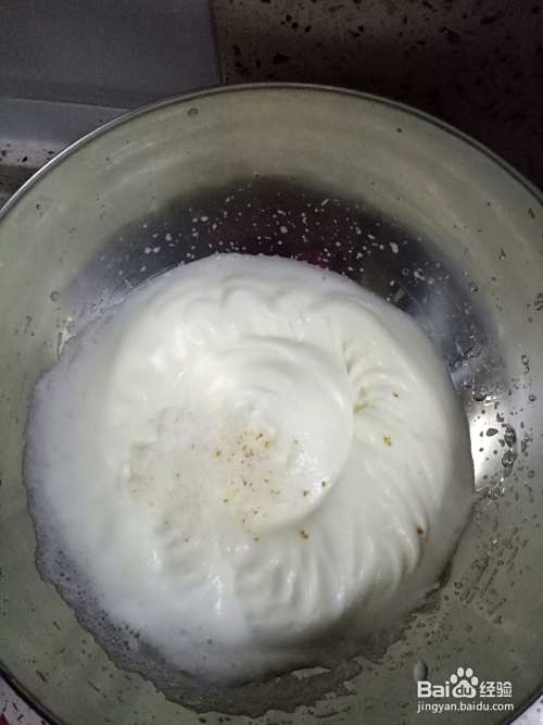 这是打发蛋白,把白糖分三次放进蛋液里,把蛋白用打蛋器打发成鱼眼泡