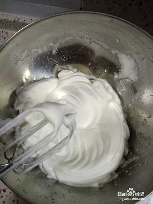 拿起打蛋器,前段,形成倒三角,把蛋白翻过来,蛋白不会掉下来,就可以了