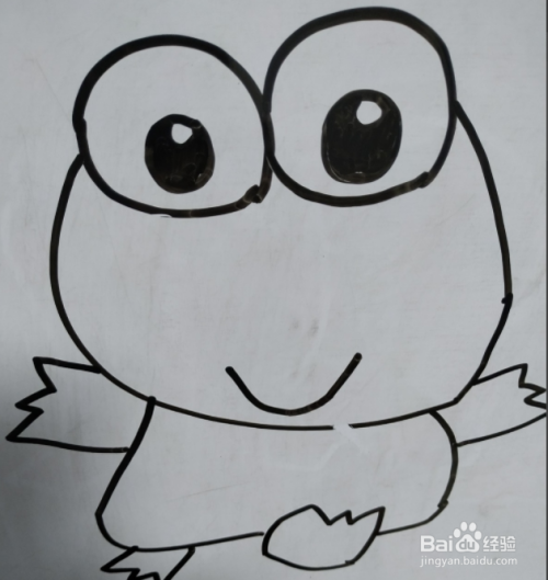 在青蛙头部的下方给青蛙画出身体的轮廓。