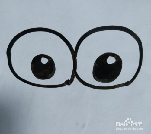 在右侧紧挨着画出另外大圆形。在圆部画出一个小圆形,在小圆形上部分涂黑。
