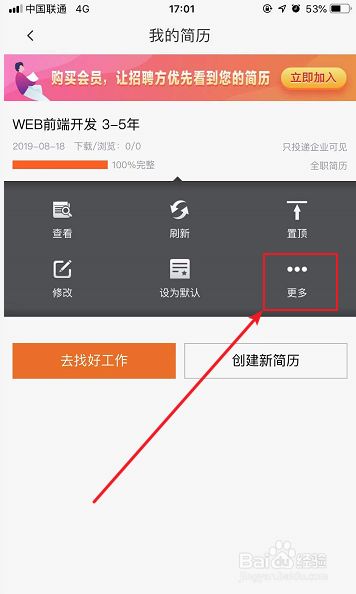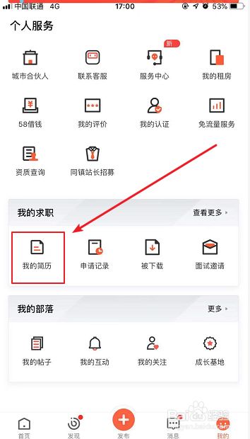 打开我的页面后,上滑滚动页面找到【我的简历】