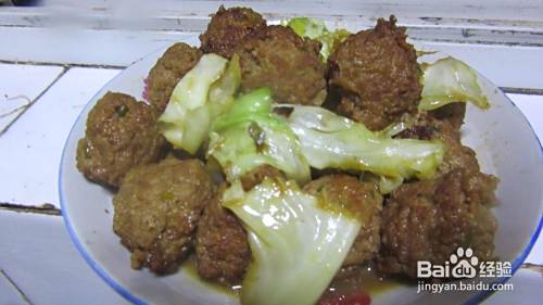 炸好的丸子捞出备用。锅里放葱姜炝锅,后倒入丸子,加水,加料酒,盐,味精熬制。之后放入卷心菜再继续熬,等水少了,出锅。
