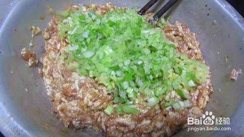 把买来的肉馅用水搅开,一点点儿加水,让水融入肉馅中。再放生抽继续搅拌,顺着一个方向。