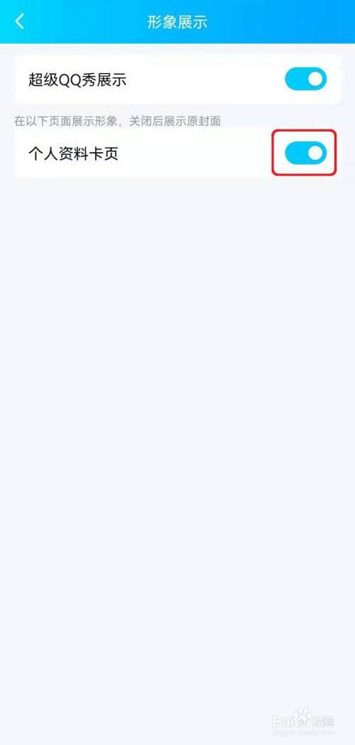 进入形象展示页面,点击关闭个人资料卡片设置即可。