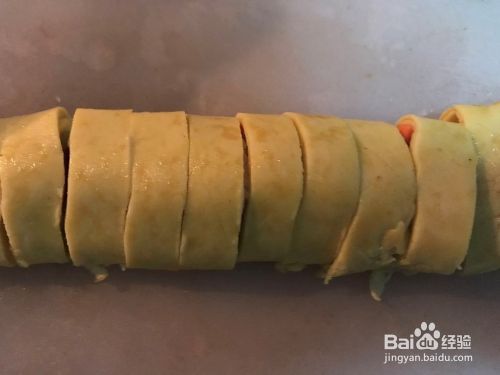 从边缘卷起,把食材包住,卷成长卷,如图所示。