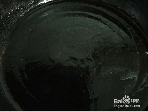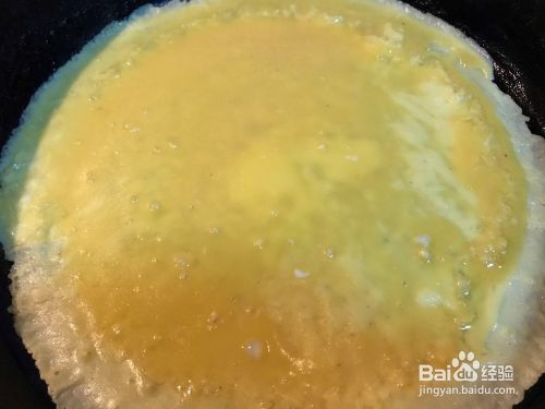 开中火加入适量油,油热了关小火,加入面粉蛋液,薄薄的一层,如图所示。