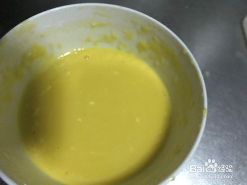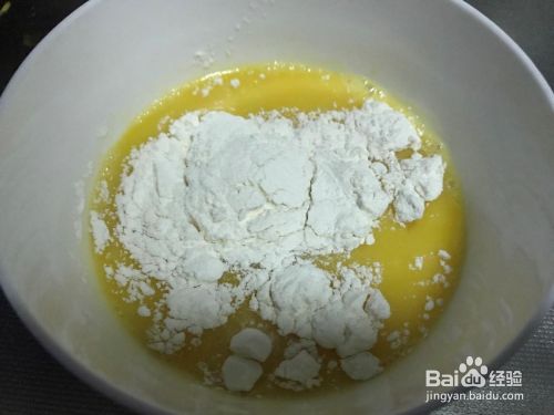 蛋液2:1加入适量面粉,搅拌均匀(面粉多了可加入适量水),如图所示。