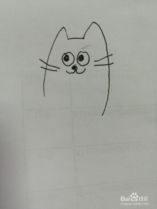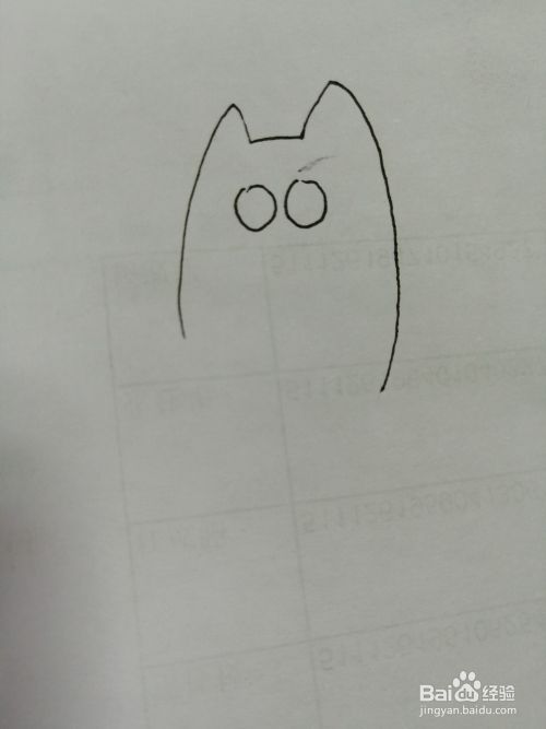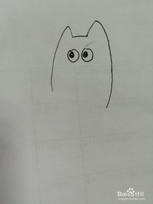 第二步,这个在可爱的小猫咪的头部里面画出两只黑黑的大眼睛。