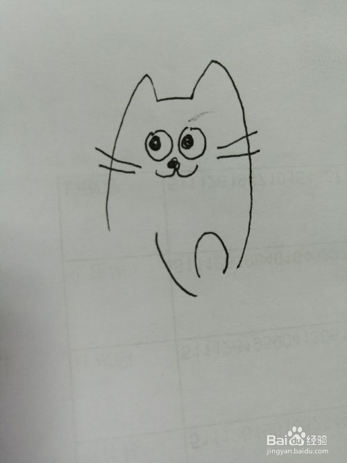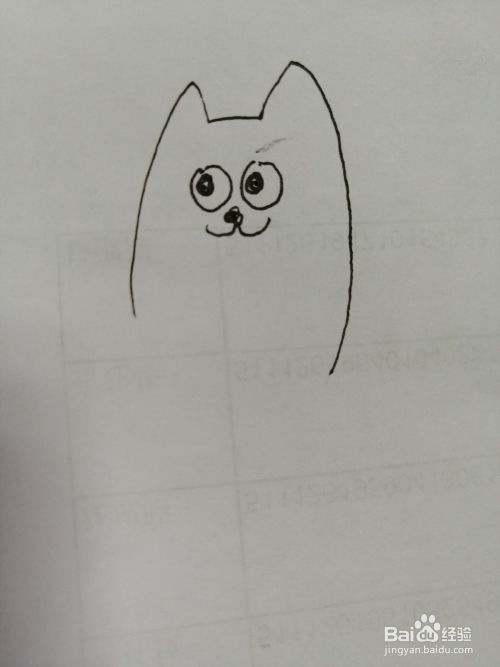 第三步,接着在可爱的小猫咪的黑黑的眼睛下面画出小小的鼻子和嘴巴。