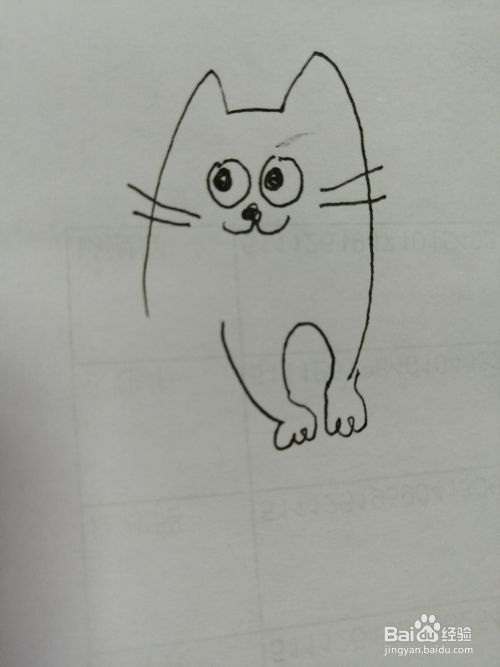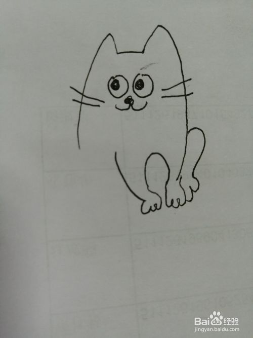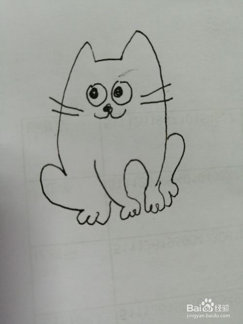 第六步,在可爱的小猫咪的两只小手臂后面画出两条蹲坐的腿。