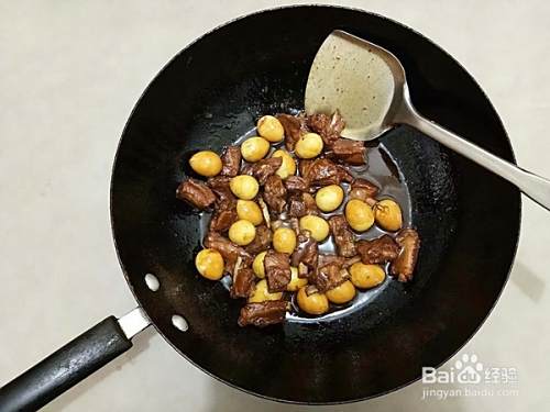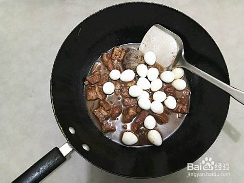 大概20分钟后,放入食盐,鹌鹑蛋继续烧制。