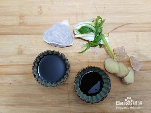 所需调料:生抽、老抽、生姜、香葱、冰糖、炖肉料包、料酒
