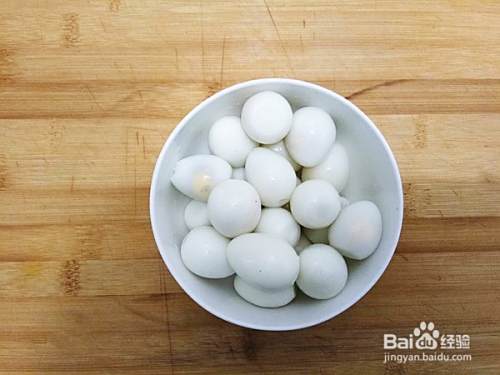鹌鹑蛋煮熟剥皮备用