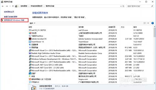 在“程序”对话框里点击“启用或关闭Windows功能”
