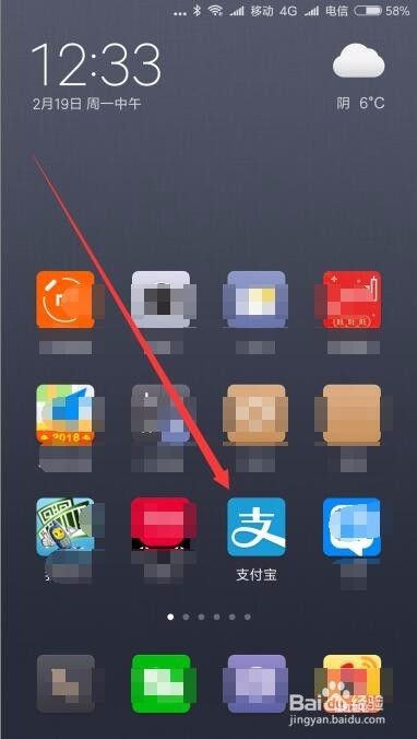 在手机上找到支付宝的图标,点击后打开并登录支付宝账号。