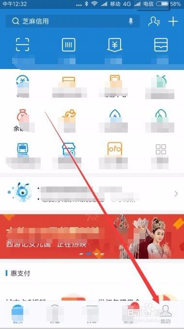 在打开的支付宝主界面,点击右下角的“我的”选项卡。
